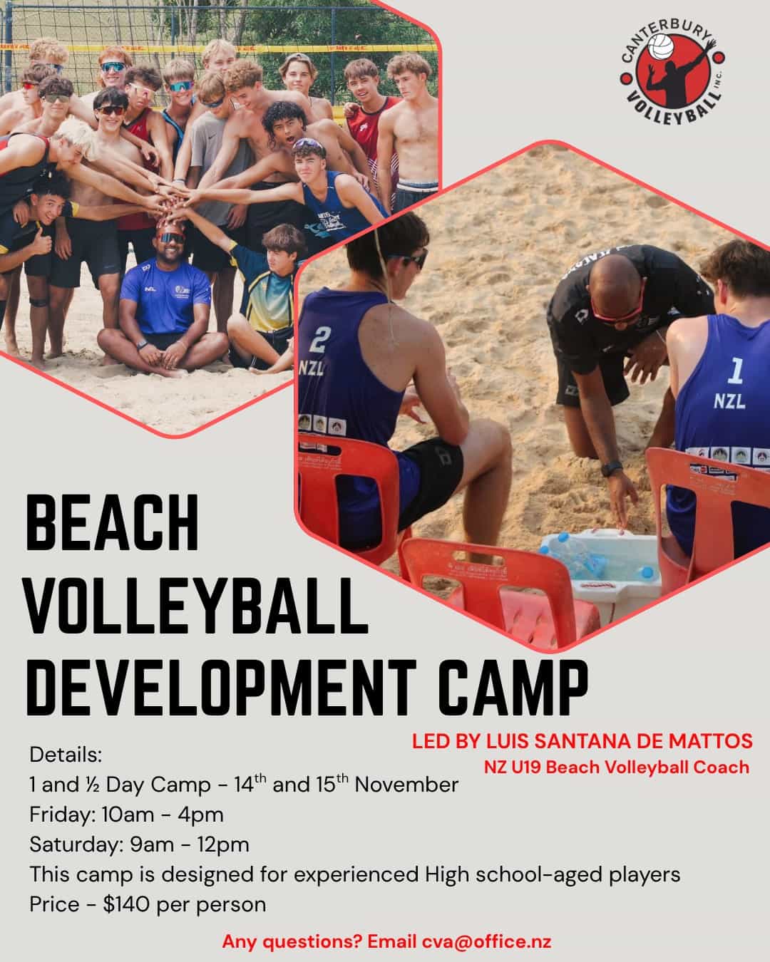 Led by Luis Santana De Mattos who is from Brazil but now lives in Auckland. Luis has been coaching for many years and is currently coaching the New Zealand U19 beach volleyball team and working through selections for the 2026 youth Olympics. Beach Volleyball has taken him on many coaching adventures including the World Champs and Asian Champs. He is incredibly passionate about helping players grow and enjoy the game and we are excited to welcome him to Christchurch.